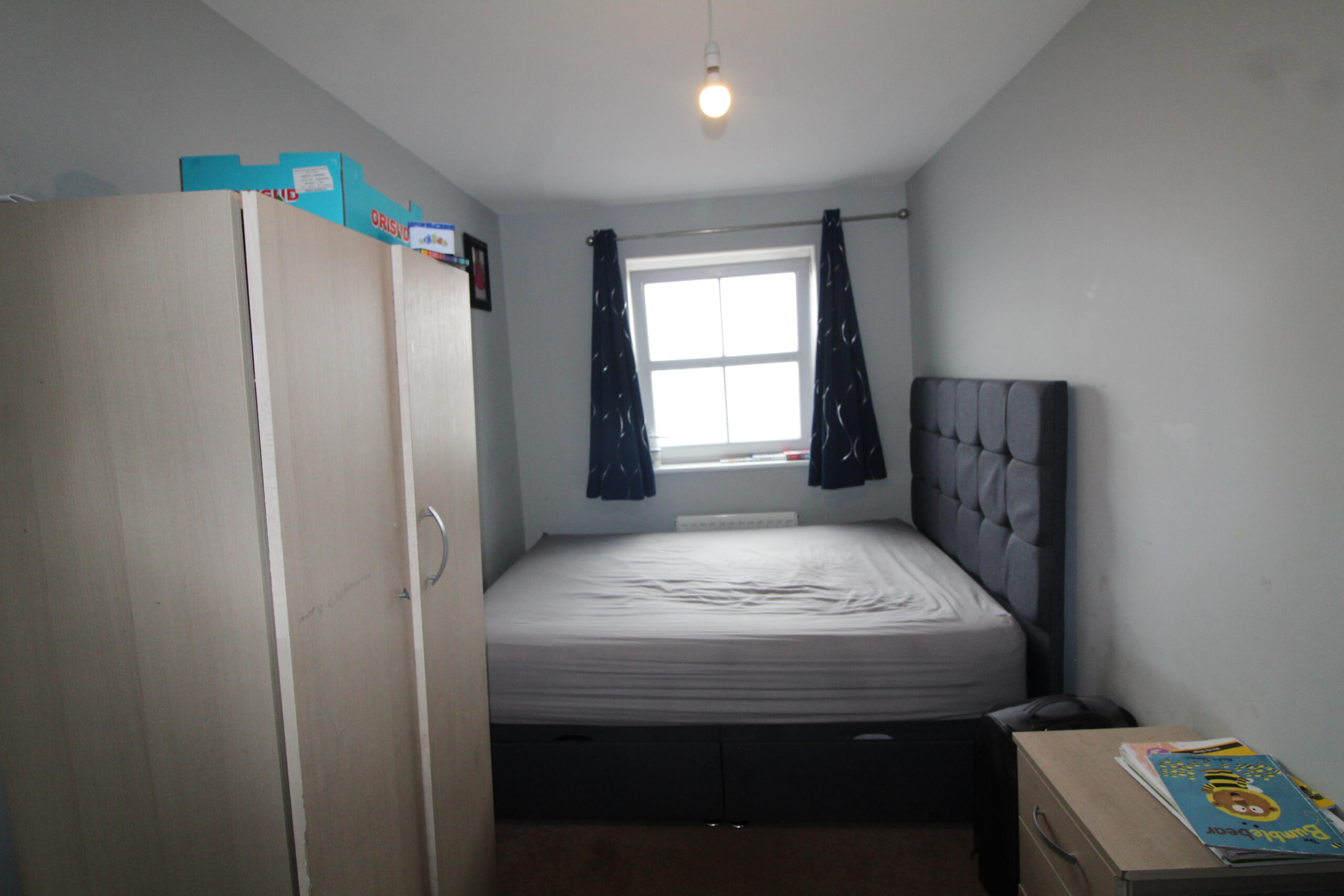 Generously proportioned double bedroom with double glazed window and Juliet balcony. Includes fitted carpet, radiator, light fitting, and ample power points. Access to: